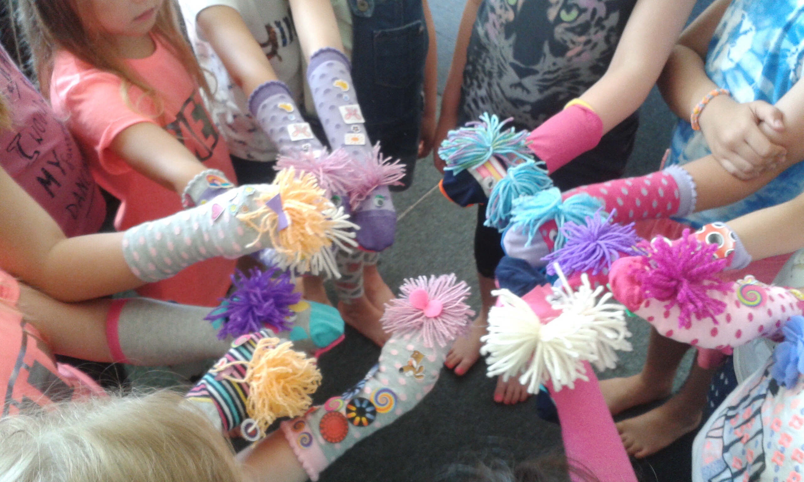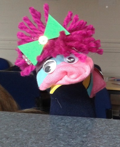 This morning I held another session for Nancy, working with two groups of youngsters, and we had great fun designing and creating sock puppets to be used in a theatrical performance later in the day. The kids each chose their colour schemes and decorations and, with a bit of help, set to sticking everything together. One of the girls showed great initiative and set herself up as the resident hairstylist, snipping and styling the woolly locks for those who fancied something a bit different for their puppet! Unfortunately I couldn’t stay for the performance this afternoon but I am sure they all had a terrific time and I will have to check out Nancy’s Facebook page to see how it went.