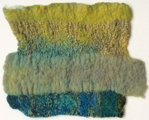 What had looked like being a pretty normal week suddenly took a more interesting turn on Wednesday.  I received the Artvango newsletter which mentioned there was a spare place on Clare Bullock’s two day nuno felting workshop, starting the following day.  Hmmmm…that would have been nice I thought, as I finished my lunch and set off back to work for the afternoon.  Unfortunately Artvango isn’t exactly on my doorstep so it’s not somewhere I get to visit as often as I would like.  But two days felting, with Clare, starting tomorrow…..it’s got to be worth the long drive down to Knebworth, and it was!