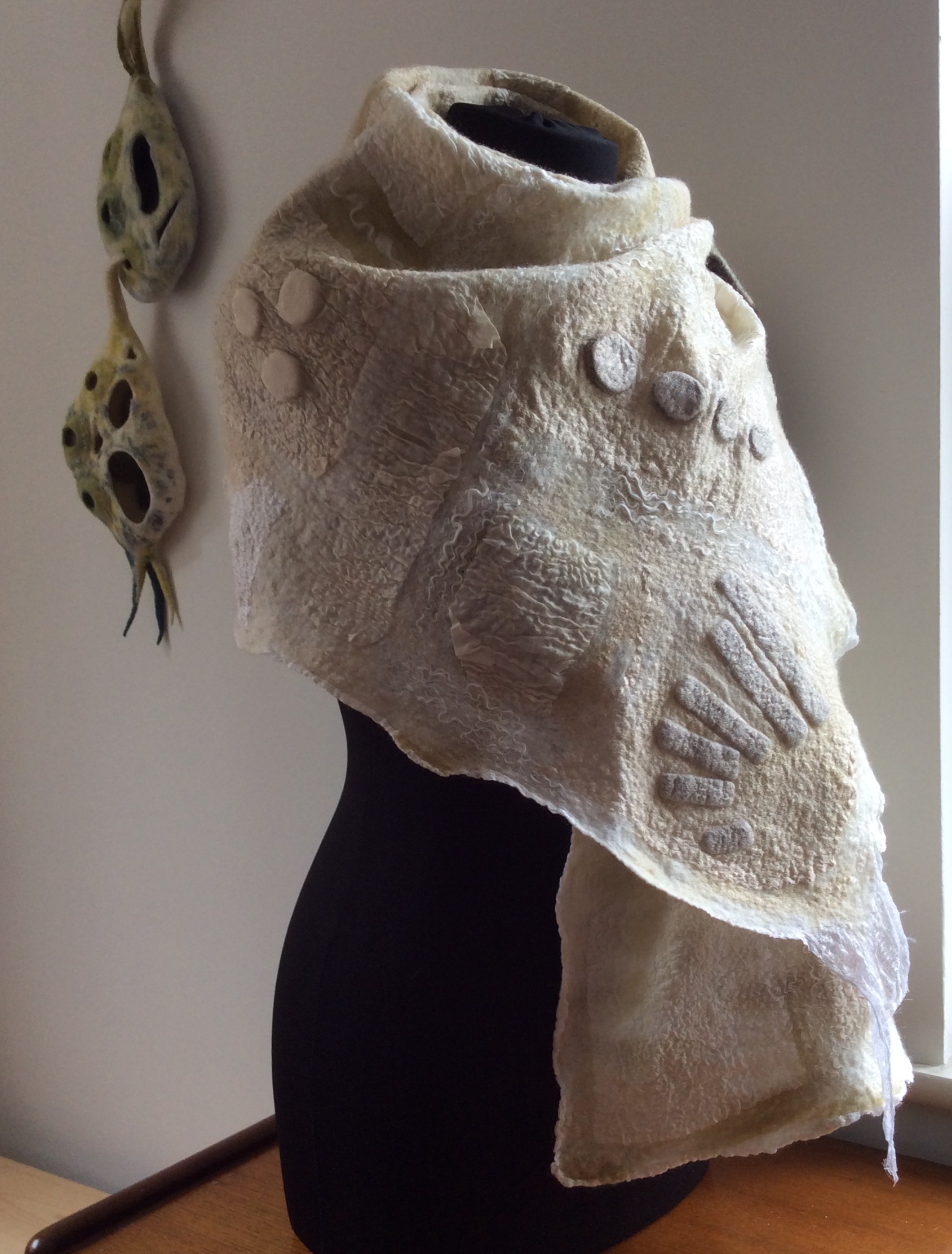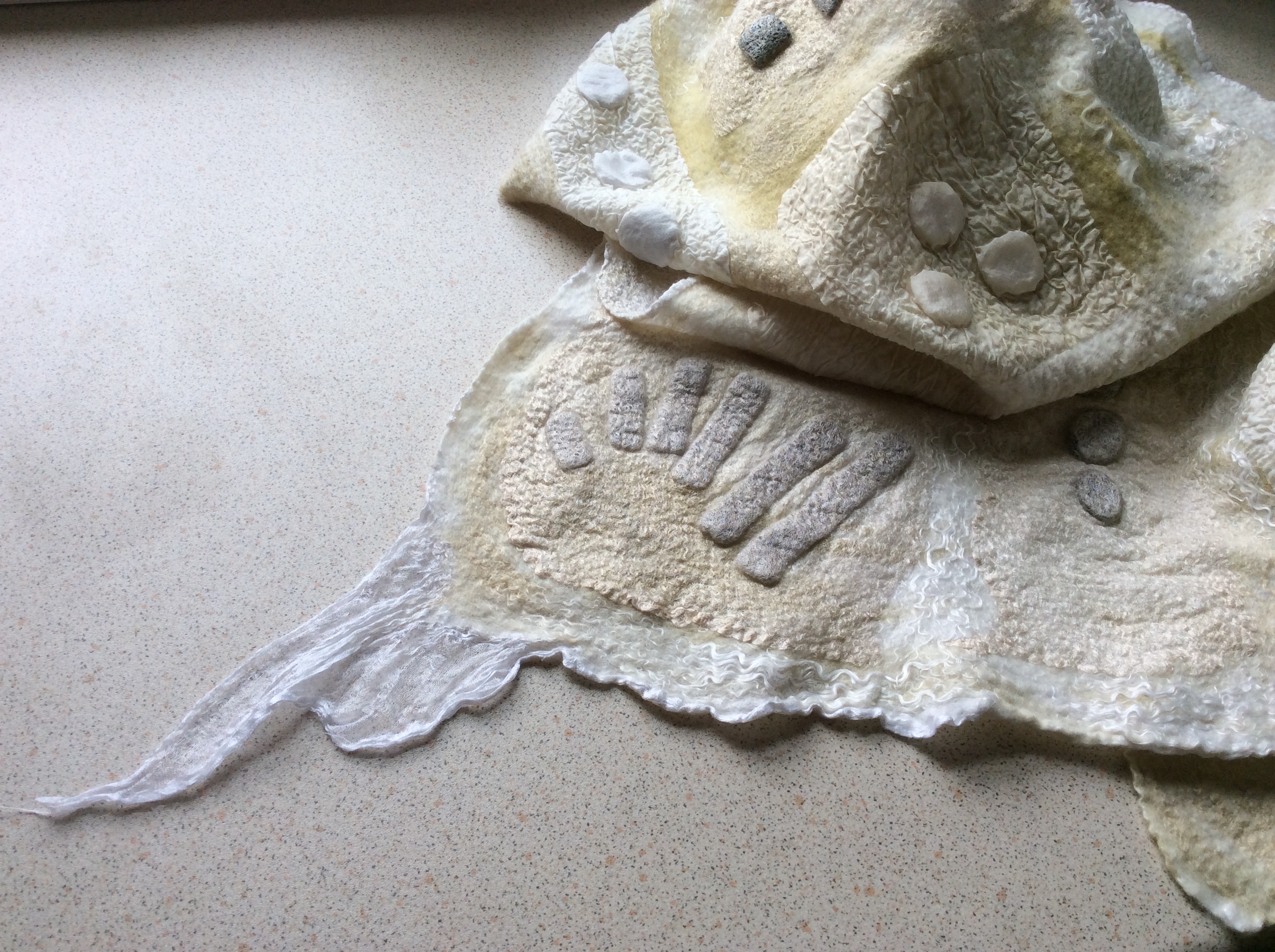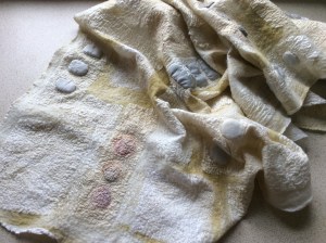 This is the finished Nuno silk wrap I made with Vivienne Morpeth earlier this week. Now it’s dry the texture and lustre of the silk really sing and I absolutely love it!