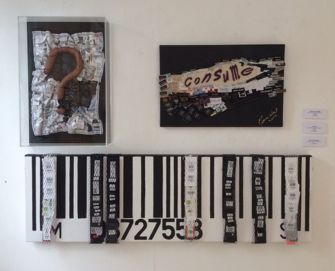 Her latest exhibition work relates to consumer excess, trade, and worship of the individual. This body of work is shown alongside some of her more important pieces from previous exhibitions.