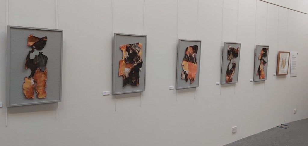 This exhibition provides a fascinating insight into the methods and materials that Sinclair uses as a printmaker and mixed media artist. What I found particularly interesting was seeing many of his beautiful, textural collograph plates, or lamina, which could themselves be hung as a work of art.