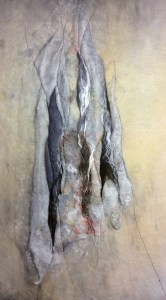 I developed a ganglion on my right hand as a result of making the bird mask last week. It’s giving me some gip so I’m resting the hand for a while and doing a few pieces that don’t require a strong grip. Yesterday it was a Tyvek Seed Pod incorporating sari silks and acrylic paint…..