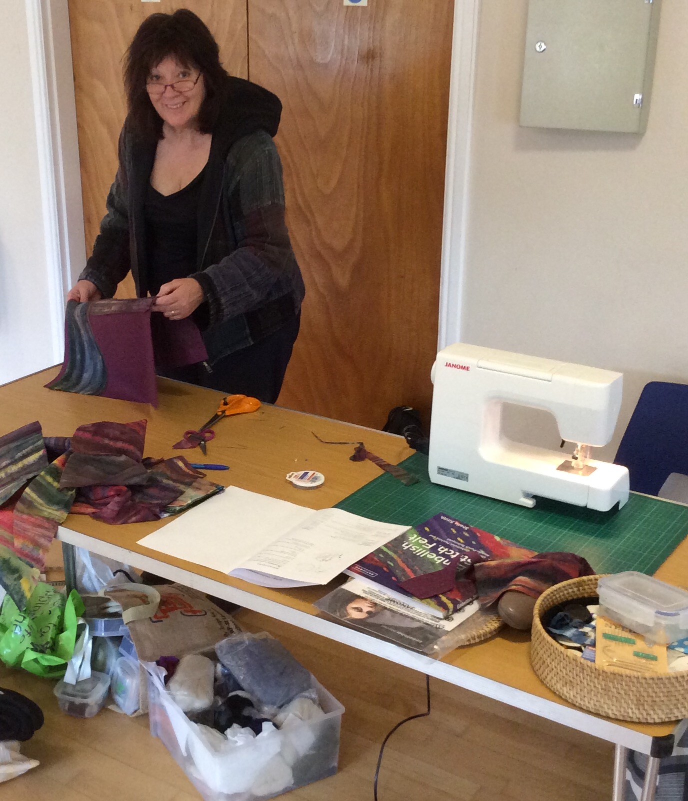 Janet made a wet felted bowl and then did some more work on the lovely picture she started last session….