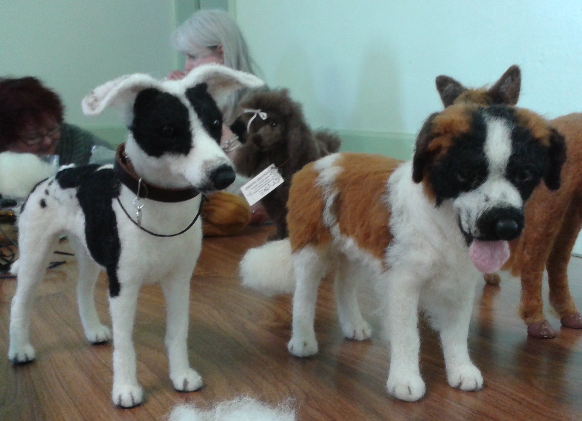 Last weekend turned out to be a bit of a wool fest!  Saturday morning, for the first time, I attended a meeting of the Lincolnshire Spinners and Weavers at Revesby Village Hall.  My friend Sheila suggested I might find it interesting as they were having a talk and demo by a local needle felter called Cindy Thompson.   Cindy’s creations, which were mainly sculptures of dogs, were beautiful and incredibly lifelike.  Each piece is created using a thin wire armature covered with wool and needle felted.  It was nice to pick up a few tips regarding the construction methods and the fact that the noses, etc are actually sculpted from Fimo, something I wouldn’t have thought of myself.  You can see more of Cindy’s work on her ‘Chicktin Creations’ facebook page.