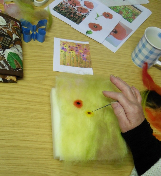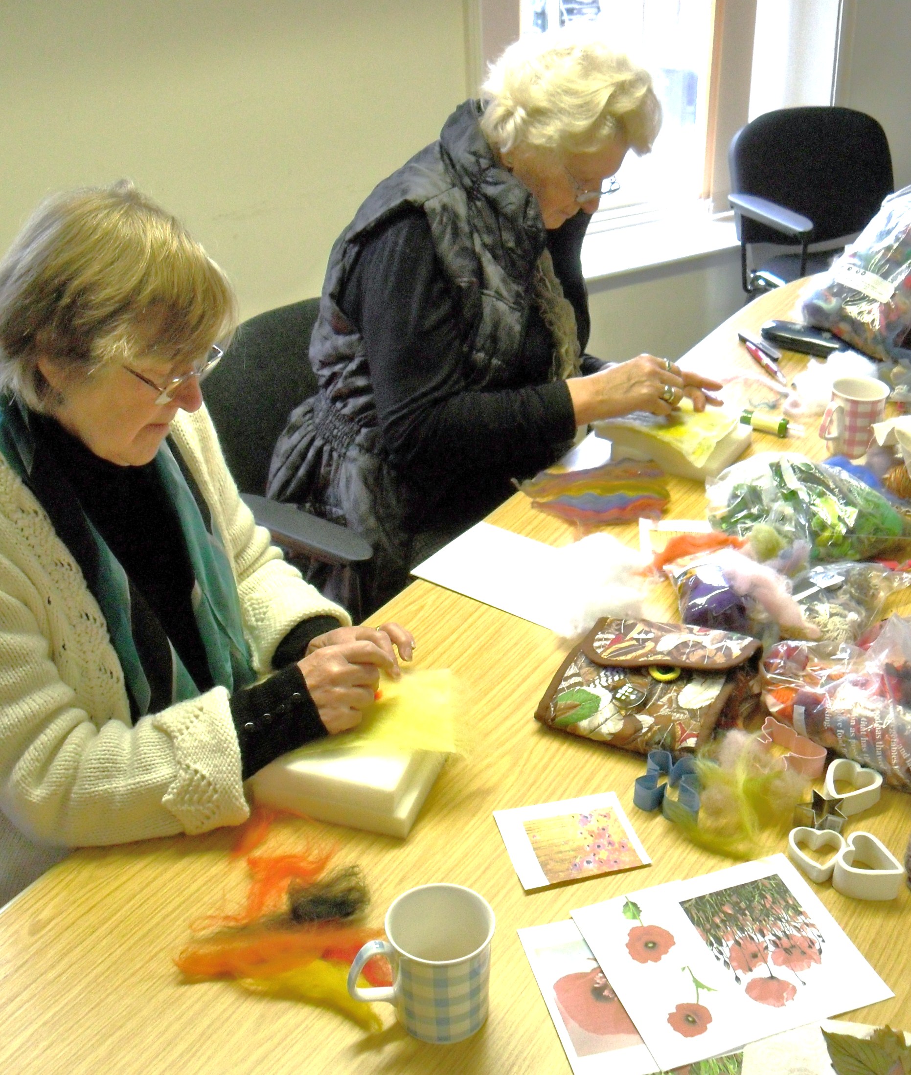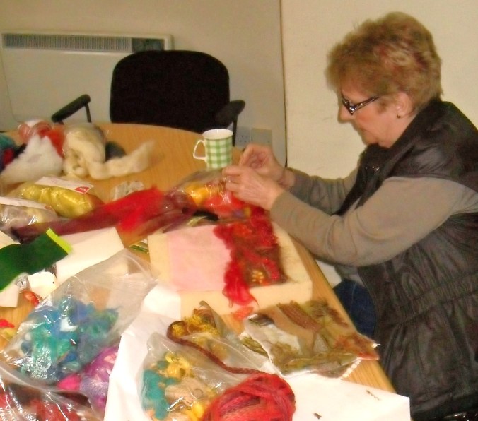 I was fortunate to find a space indoors (only marginally warmer!!) where I sat and demonstrated needle felting to the ladies (and the occasional gent) who were curious to see how it was done. Thanks again to all of you who stopped by and I hope to see some of you at future workshops. Also keeping warm was Debs from Debs Makes, busy upstairs having fun with her Saturday afternoon sewing group.