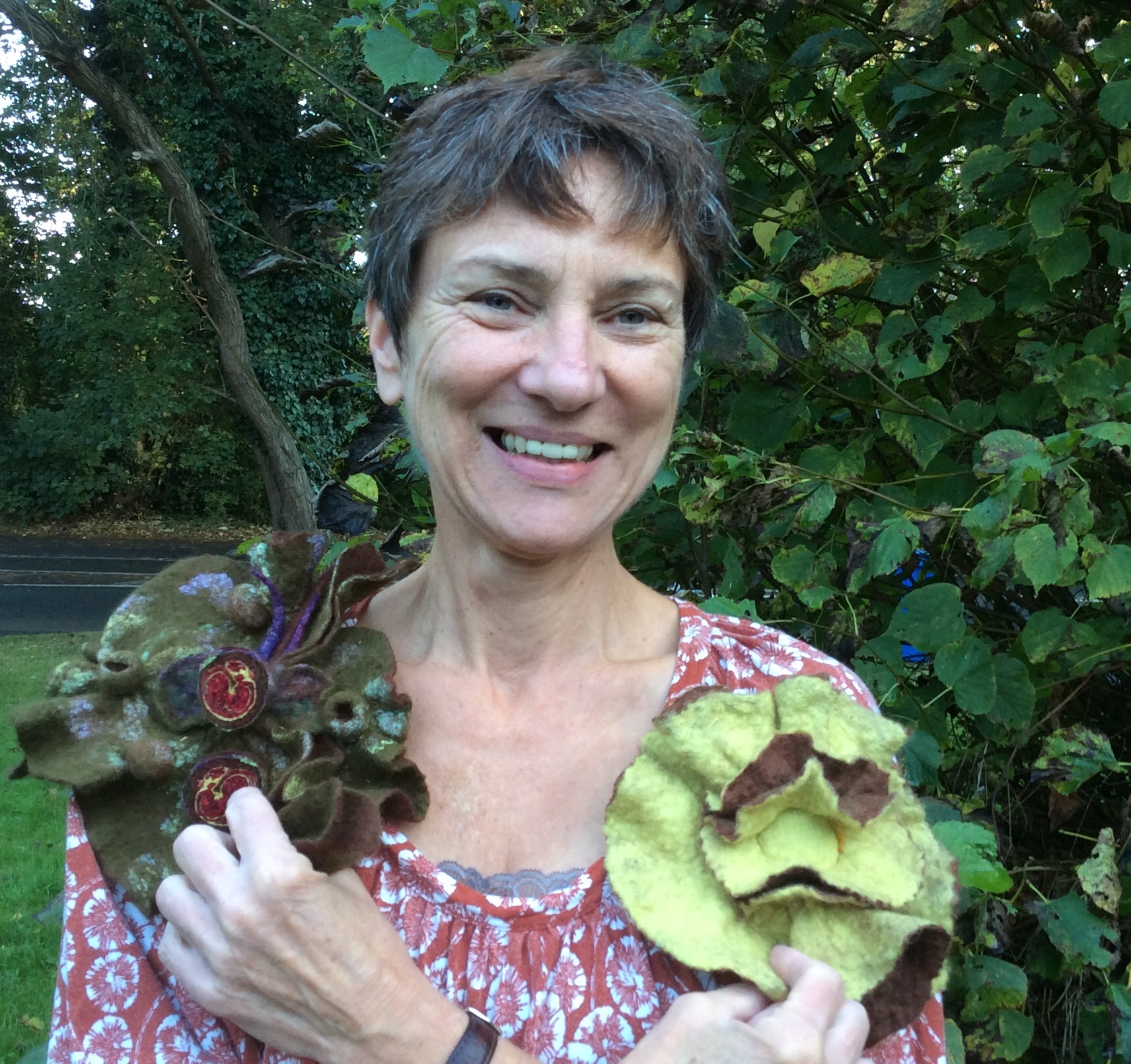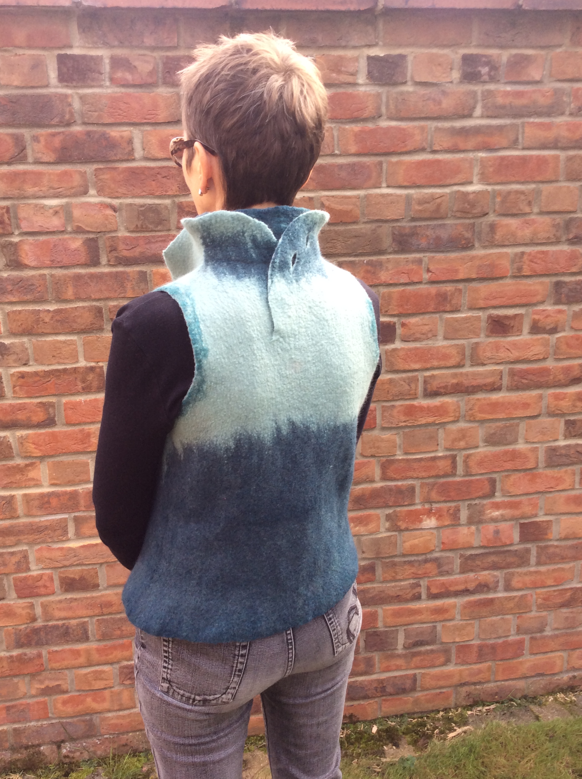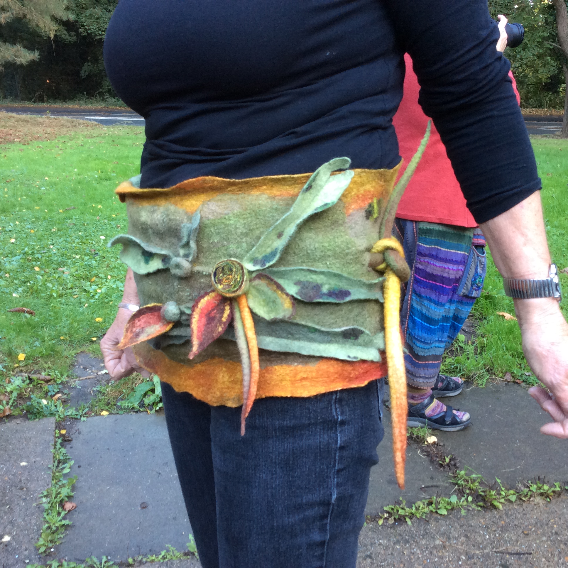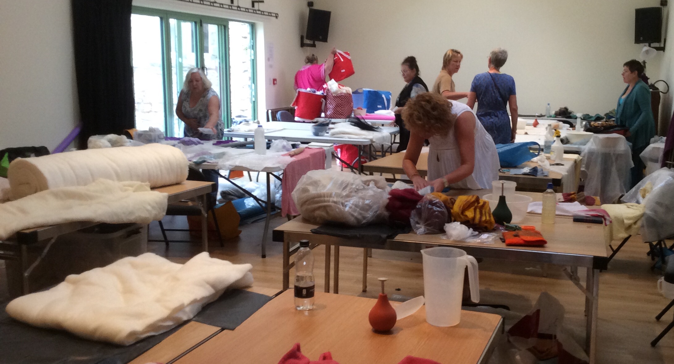 The weather in Lincolnshire has been dull, wet and miserable but I’ve had a fantastic day felting in Barton on Humber at the studio of IFA tutor Vivienne Morpeth. Vivienne creates wonderful Nuno felted wearable art which I saw for the first time back in April and I knew I had to have a workshop with her.