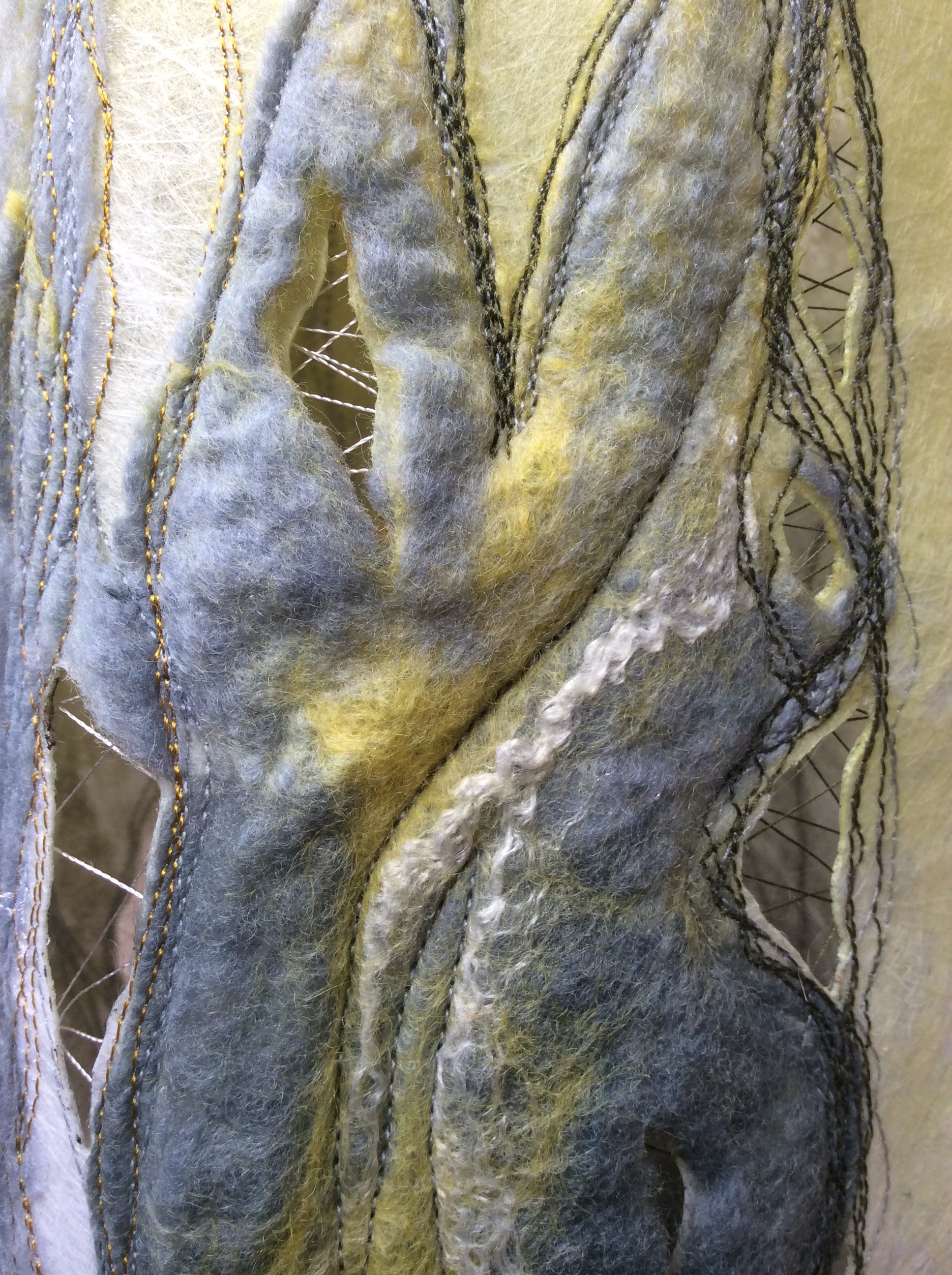 After each demonstration the students set to painting, stitching, wrapping and distressing (using heat guns and soldering irons) their Tyvek and Lutradur to create the various elements.