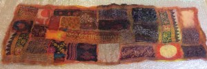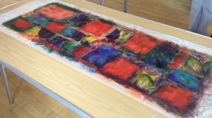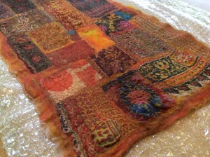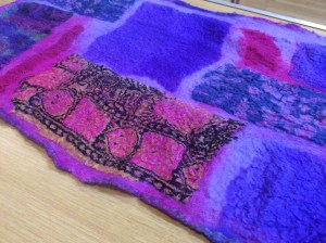 In February the Ladies at EYE’s (East Yorkshire Embroiderers) invited me back up to spend the weekend with them in Cottingham. I’d been working on a new illustrated talk for them, originally I’d said it would be The History of Feltmaking but very soon in to my research I realised that title was a huge mistake as it was far too broad a topic for a 45 minute talk! I knew I wanted to start with some of the earliest discoveries of felt known to man, discovered in the Tarim Basin and at Pazyryk in Siberia, and end with present day Feltmakers who are pushing the boundaries of what can be achieved with fibre, water, soap and imagination. The difficulty was what to leave out and what to put in from the intervening 4,000ish years which would join those two sections and ensure the presentation was interesting, exciting and had flow. Having delayed starting this project until the beginning of December it was going to keep me very busy over Christmas and in to the New Year!