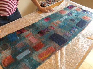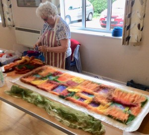 Weve just finished day one of a two-day Nuno Felting Workshop at Simply Stitch, East Keswick and what a productive day we’ve had! 10 ladies are taking part and today they experimented with different lightweight fabrics, combining them with Merino fibres to produce beautiful new Nuno fabrics.