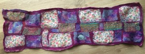 These scarves celebrate my favourite time of year, the Autumn. All around us the leaves are now turning beautiful shades of red, orange and gold, there’s the crunch of leaves underfoot and the earthy smell of damp soil. It’s time for wearing warm scarves and mittens and what better excuse for making some Autumn inspired pieces. I couldn’t resist adding a few falling leaves to a couple of them!