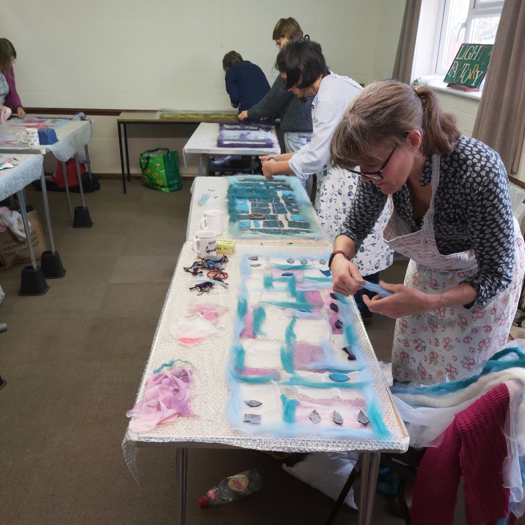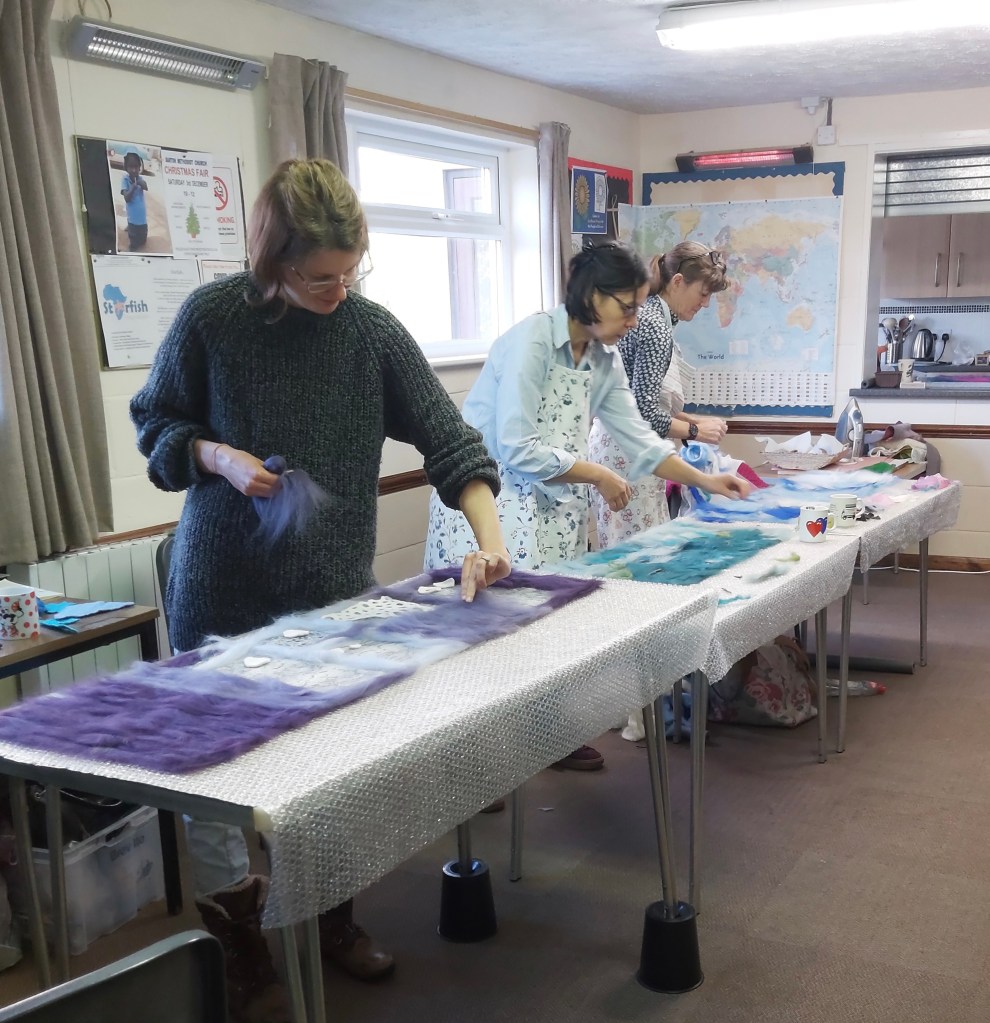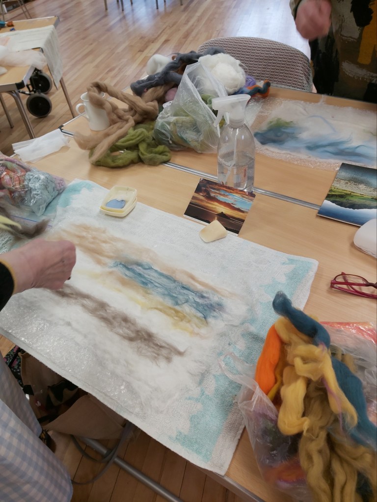 Thirteen ladies took part in the workshop, 11 making the slippers and two of them opting to create a wet felted picture which they had done with me previously and had asked if they could do again.