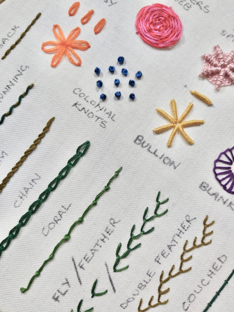 In this class we progress through the different stitches with each student making a sampler which can be used for future reference. The sampler consists of 18 stitches (some basic and some not so basic!) and students also get a template of flower shapes which they can take away and stitch at leisure using their newly acquired skills.