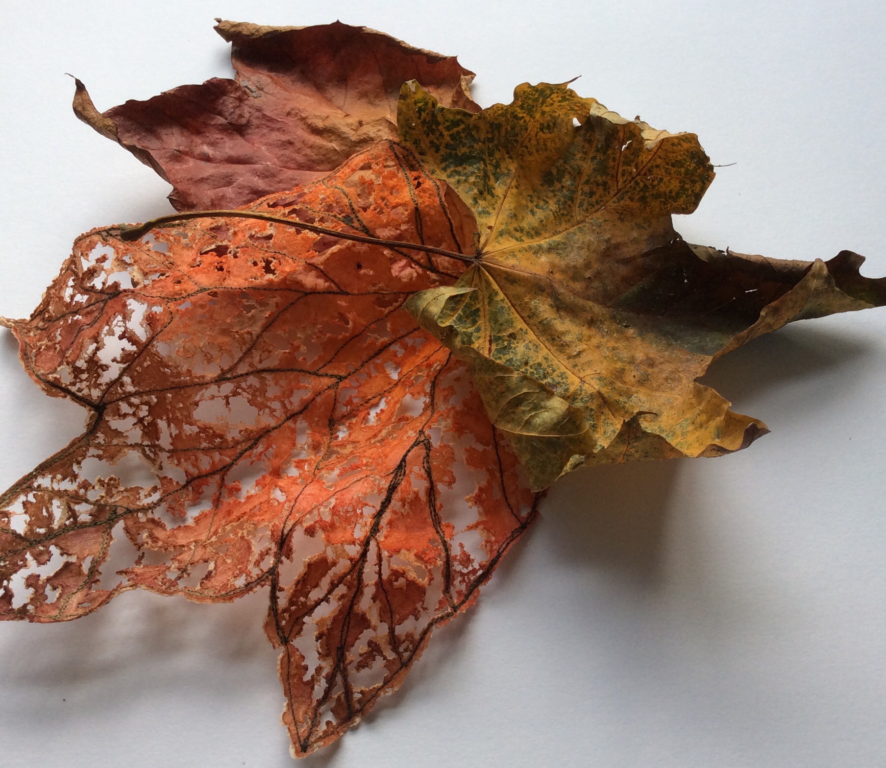 My immediate thought was to create an Autumn Leaf, possibly a leaf skeleton, and photograph it with real fallen leaves. I had previously made a couple of leaves from Tyvek which were embellished with metallic threads and beads, but for this challenge I wanted to make a more natural looking leaf.